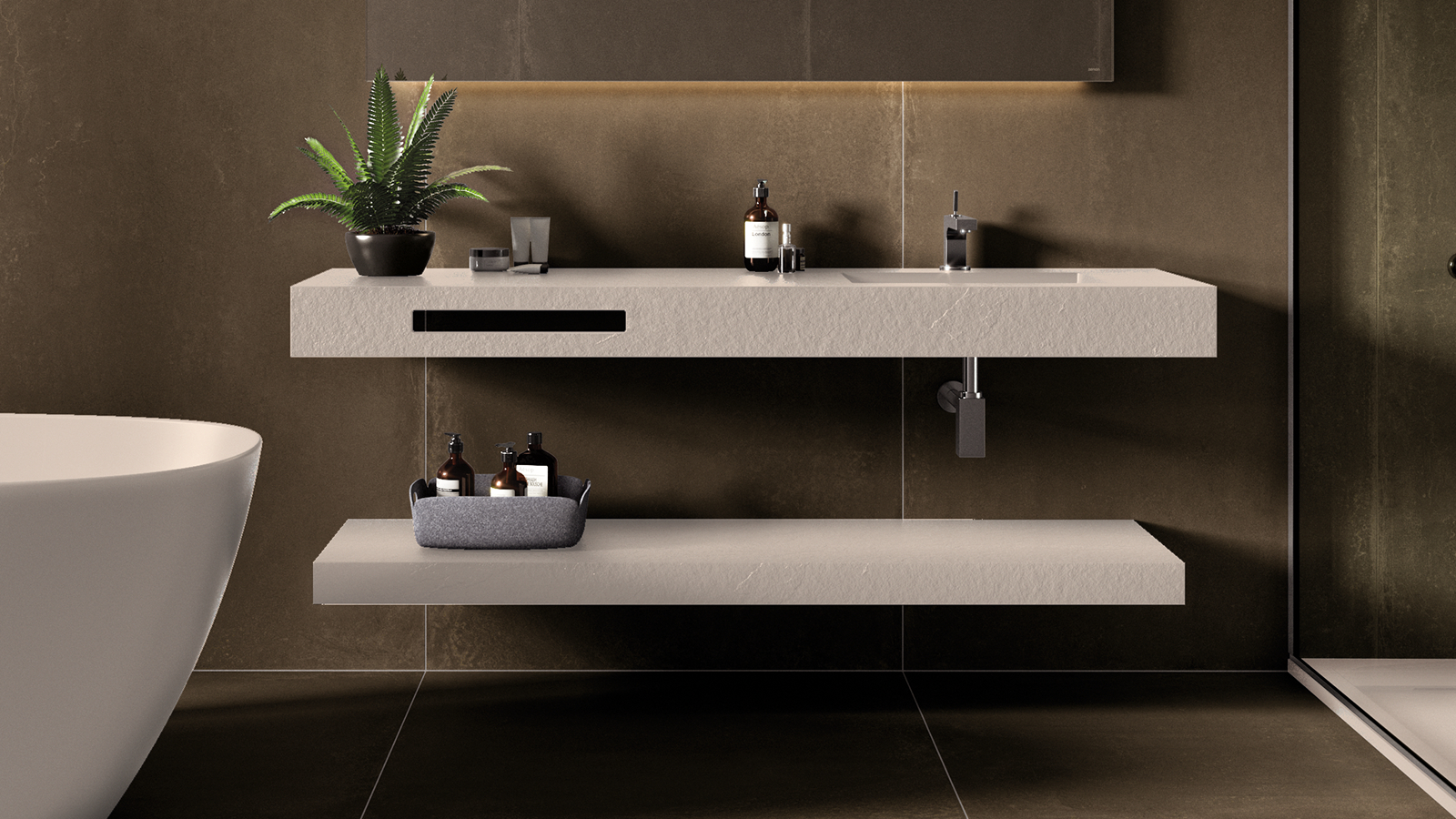 Ensemble Vasque Etagére est composée de plans de travail avec vasque suspendu selon les goûts les plus exigeants, grâce à sa polyvalence en termes de formes, de finitions et de couleurs.